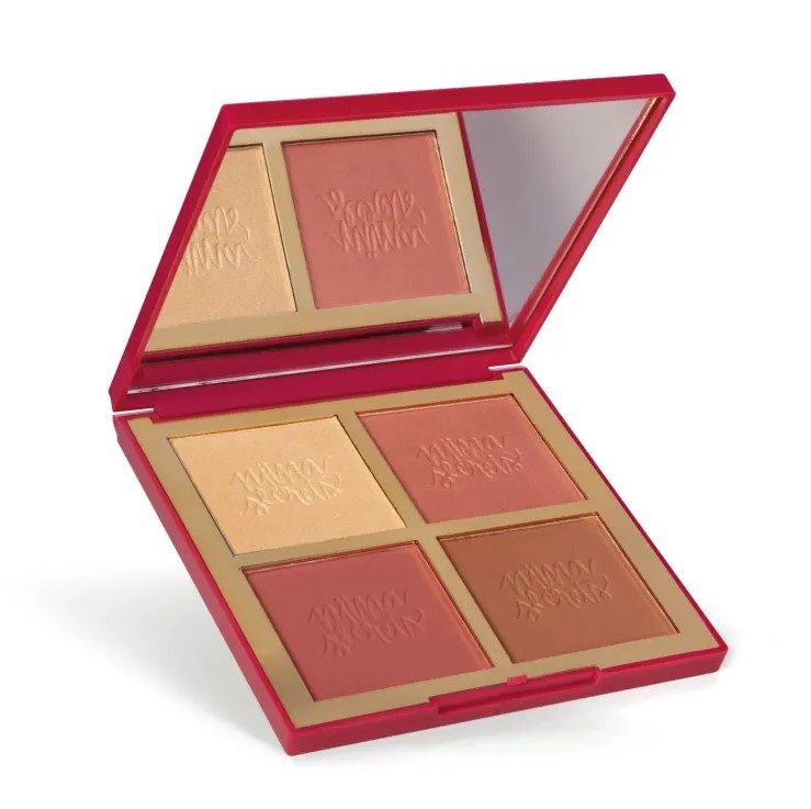 Primeiro, temos o iluminador com partículas super brilhantes e acabamento cintilante. Para complementar, têm duas cores de blush: um é pêssego brilho e outro é rosado mate. Por último, você também conta com um bronzer aveludado que vai dar aquele aspecto de pele bronzeada incrível!