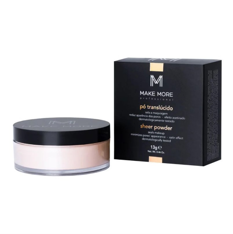 A linha de pós translúcidos da Make More possui textura super fina que sela a maquiagem, disfarça linhas finas, provendo um acabamento aveludado, sem pesar e ou ressecar, proporcionando uma maior durabilidade para maquiagem.